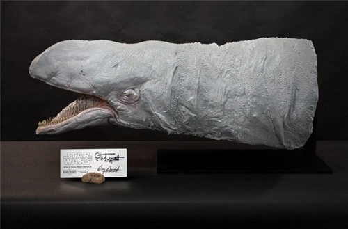 Each exogorth replica is hand painted in many layers including washes and spatter to match the style and colors of the original prop. The static replica is made from durable fiberglass with magnetic removable eye stalks for safe shipping. These impressive replicas were painstakingly developed and paint mastered in our New York studio.