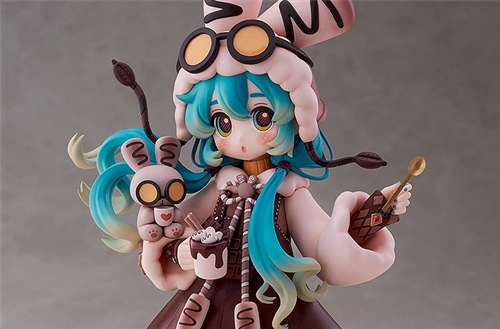 S-FIRE has created a figure based on the winning design, drawn by SUUROKU, from the winter drink-themed Hatsune Miku costume design contest! The outfit features melting milk chocolate and fluffy marshmallows that look good enough to eat, and has been meticulously designed, with special attention to details such as the cuffs and shoes. What's more, the cocoa mug and chocolate bar-shaped stand look just like the real thing! We look forward to serving you a sweet, heartwarming experience with Hatsune Miku!