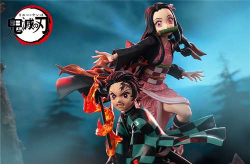 The product shows Tanjiro and his sister Nezuko fighting. Tanjiro holds the Nichirin Sword in his hand and uses the animation of "Fire God Kagura", staring fiercely ahead, and the flame special effects exude a strong sense of intimidation; Nezuko is placed in a jumping posture. Behind Tanjiro, his feet are supported on the tree-shaped platform, and he looks like he is assisting his brother in battle. Putting the two together adds a powerful sense of presence that is different from the past, bringing new fun to the display of scenic items!