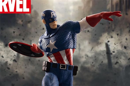 The dynamic pose just before throwing the Stars and Stripes shield and the detailed texture of the scale mail-like