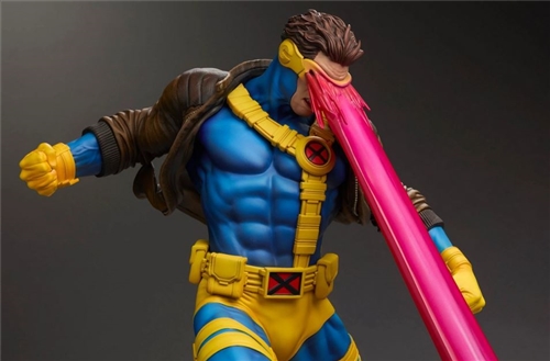 This fully sculpted X-Men collectible showcases the leader of the elite X-Men Blue team. His appearance is inspired by the beloved ’90s-era designs, including a brown jacket and blue costume with yellow accents. The Marvel statue has a powerful light-up feature in Cyclops’ illuminated optic energy blast, a glowing red beam which shoots down into a base composed of broken machinery. Whether turned off or on, this incredibly vivid detail is a striking reminder of Cyclops’ Alpha-level abilities.
