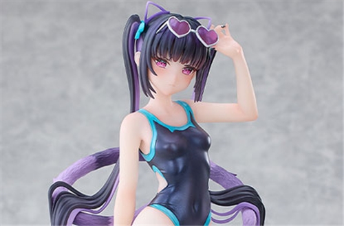 Popular illustrator Rosuuri's original character Cheshire Cat Mika is now a scale figure in her summery swimsuit! Mika wears a slightly displeased expression on her face, but is betrayed by the excitement displayed by her lifted tail. Her adroable "tsundere" moment has been carefully immortalized in figure form. Her deep purple school swimsuit and heart-shaped sunglasses all add to her adorable yet cool charm. The figure is packed with visual highlights such as Mika's cat-ear accessories, fluttering twintail hairstyle, cat-shaped swim ring and slightly displeased gaze-all of which highlight her mischievous charm. The base of the figure is sculpted to look like a sandy beach with starfish and beach bottles on the sand. The base of the figure can be connected to the base included with White Rabbit Rosu: Swimsuit Ver.! Be sure to add Rosu and Mika to your collection!