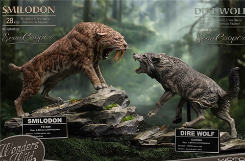 28cm long Wonders of the Wild Prehistoric animal series statues Dire Wolf/ Smilodon & Dire Wolf (Double) Statue Includes: