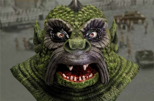 The Ymir bust has been carefully drawn to capture Ymir's original appearance from the classic film. The paintings include a variety of earthy tones that illustrate the reptilian and otherworldly nature of the creature. Every detail is carefully emphasized, right down to the animal's eyes and teeth, making it look lifelike and menacing. An art plaque is mounted on the display base to add to the museum quality of the piece.