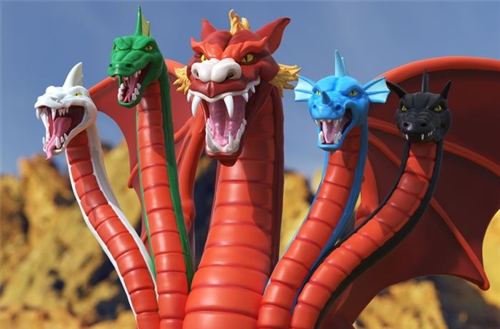 At an imposing 15.6” tall, 19.6” long, and 19.7” wide, this retro-style Dungeons & Dragons ULTIMATES! Vinyl of Tiamat depicts the mighty five-headed dragon looking appropriately fearsome, featuring premium soft vinyl construction along with points of articulation at the hips, legs, wings, tail, and all five necks and heads.