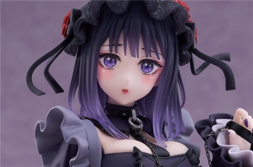This time, Kitagawa Umude Kuroe Shizuku has three-dimensionalized the shape of Umude Shizuku in the 1/6 scale of the T-most series, and the sculpture restores the shape and wrinkles of the Gothic Lolita-style clothing made by Shinkai. , details such as the rose pattern on the fishnet stockings and the iron chain on the chest collar are also reproduced without sloppiness. The purple short hair made of color-transparent material combined with painting exudes an ethereal atmosphere. The base part is made the same as the previous Liz. The heart-shaped colorful stand allows you to display two of Hai Meng’s popular looks side by side!