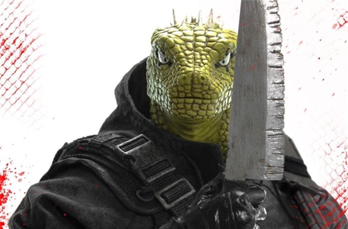 2 interchangeable head parts: masked head, lizard head