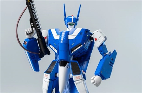 ROBO-DOU "Robotech" VF-1J Transformer Fighter (Max Sterling) is about 8 inches (20.3 cm) tall in fighter mode and can be fully transformed between three modes: fighter, guardian and fighter. The main frame is made of zinc alloy die-casting and engineering plastics, and is equipped with a highly movable skeleton with up to 109 joints. Accessories include GU-11 machine guns, four sets of missiles and four pairs of interchangeable hands.