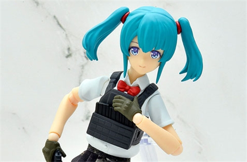 From the military high school girl series "Little Armory" comes unnamed character D in a new style! This figure includes black equipment parts and a cloth skirt with a camouflage pattern. Featuring a black equipment color scheme that is mainly used by special forces for its intimidating effect and low visibility at night. Variant D features a short twintail hairstyle, a vest designed to carry armor plates, and trekking shoes, resulting in a "ballistic protection" configuration. Hair and eye colors have been changed, allowing you to enjoy an even greater variation of display options when paired with past entries in the series. The figure comes with an CZ75 type automatic pistol that can be stored in the included holster.
