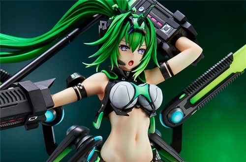 This Next Green figure is based on an illustration drawn by Tsunako specifically for this figure. The heavy machinery-like units are painted in gunmetal, giving it an even heavier impression. The lime green accent color is also applied with a gradient paint finish, creating a luminous effect. Don't miss the flowing ponytail design.