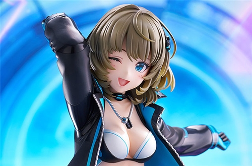 From "THE IDOLM@STER CINDERELLA GIRLS" comes a 1/7 scale figure of Kaede Takagaki from Luminous Azur Duo! The figure features Kaede passionately to the rhythm of the music. The details of her Dance On The Galaxy outfit been faithfully captured in figure form, from the jacket to the acessories such as her gloves, shorts, belts and emblem. The neon blue details add an electric and stylish touch to the mainly black-and-white outfit, and give off a blue glow when under black light. Kaede's dynamic pose is sure to capture your attention with its energetic charm. Be sure to add the adorable Kaede with a captivating wink and smile to your collection!