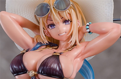 Illustrator Toridamono's original character Mira: Sunset Ver. has been transformed into a scale figure based on a popular summer greeting illustration. The figure features the tanned Mira showing off her alluring physique with a stylish black swimsuit, sporting a relaxed smile. Her curves, a distinctive element of toridamono's illustration style, glamorous sunglasses and hat, suitcase as well as the sandy beach resort-like base work hand in hand to create the perfect summer figure. Mira's sun-kissed skin gives her a charming summery glow that is simply irresistable. Be sure to add the beautiful Mira to your collection!