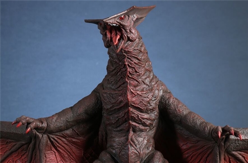 The sharp head shape like a bird of prey, the bright red ferocious eyes, the muscle lines, the membrane wrinkles, and the blood vessels protruding from the surface of the body are delicately expressed to reproduce the biological shape of Gaos. The product can be displayed together with the "Daei 30cm Series Gamera (1995)" which was also prototyped by Shunsuke Niwa , to reproduce the confrontation scene of the final battle between the two giants.