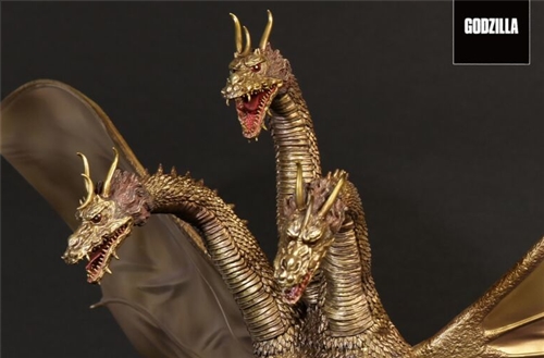 "Toho Daikaiju King Ghidorah (1964) Fierce Fighting Color Ver." is modified based on the regular version released in 2019. It uses a powerful size of 36 cm in height and 66 cm in width to reproduce King Ghidorah's wings-spreading posture. According to In the play, costumes were used to delicately depict the details of the three heads and the golden scales all over the body. The difference is that the fierce battle color version Ver. In addition to the golden paint on the whole body, it also has additional dirty processing to show the posture after the fierce battle in the play.