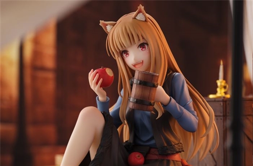 From "Spice and Wolf" comes the main heroine Holo. With her long hair, big ears, and bushy tail, Holo is recreated to be full of charm. The base is sculpted with a wooden box and fallen apples.