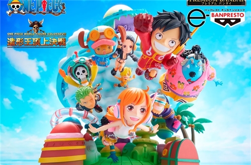 This scene work with the theme of Mirai Island is a work by Japanese prototype artist "STUDIO-Len" as an entry in the Deformer Figure department of "ONE PIECE: Top Showdown". It fully reproduces the "One Piece" comic book. The cover illustration of Episode 106 is reinterpreted with WCF's consistently pleasing proportions. It not only brings together all ten members of the Straw Hat Pirates, but also features the scene architecture of Future Island, the egg-shaped structure towering over the clouds, and the bright and full gradient colors. .. ...etc., etc. are very careful. In addition, the "One Piece" LOGO is presented with a color-through visual effect on the front of the base, and the completeness is very high! At the same time, this is also the first time WCF has assembled so many characters in a work, which is of great collection value!