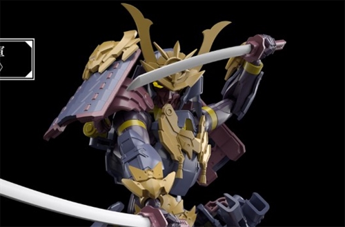 The "30MF Upgraded Armor (Iron Calamity General)" can be used with the Iron Calamity Samurai body. The upgraded armor included in the kit adds a large number of gold decorative parts to the Iron Calamity Samurai. The weapons include a katana and a wakizashi. When attached to the body, it can reproduce the advanced class "Iron Calamity General" who uses dual swords .