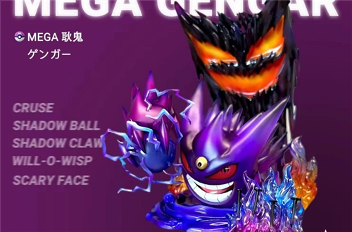 Brand: AS StudioWork: Pokémon Mega GengarSize: 1/20 scaleConfiguration: main body + color commemorative cardPacking: pearl cotton cowhide box + color boxEstimated shipping time: 2023/Q4-2024/Q1