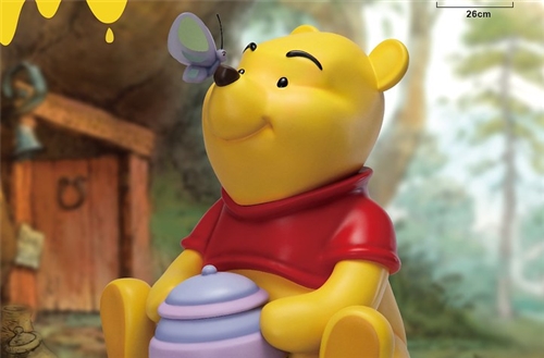 The Master Craft series continues its fine craftsmanship of beautiful products. Each part is molded and painted by hand with full attention to each detail. The quality of the tree stump platform should not be overlooked. The detailed wood grain, growth rings and texture of the trunk are very realistic. The honeypot and butterfly accessories are also meticulously crafted. Pooh’s innocence and modest greed for honey make people want to hold him right in their arms. People who love Winnie the Pooh absolutely cannot miss this classic collectible!
