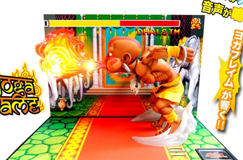 From the Street Fighter T.N.C. (The New Challenger) series comes Dhalsim, shown on a display stage that looks straight out of the games! This officially licensed non-scale pre-painted figure includes "Yoga Flame" LED light and sound effect.