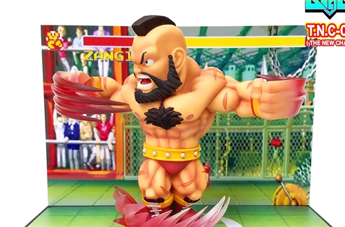 From the Street Fighter T.N.C. (The New Challenger) series comes Zangief. Shown on a display stage that looks straight out of the games! This officially licensed non-scale pre-painted figure includes "Double Lariat" LED light and sound effect.