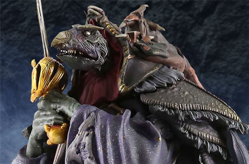 Chronicle Collectibles is delighted to bring you the Garthim Master Figure. Standing tall with a cruel sword draped over his shoulder, looking smugly satisfied by the might of his blow in a Trial by Stone, skekUng is resplendent in his gaudy robes, the very essence of Skeksis decadence. Cast in hand-painted polyresin material and measuring an impressive 10 inches in height, the statue of the mighty skekUng will be the first 1:8 scale offering in a full line of collectible statues from The Dark Crystal. Reserve yours today.