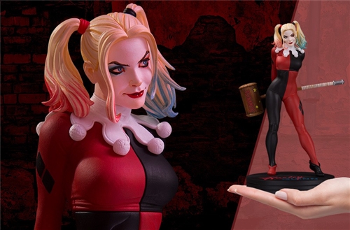 Harley looks like she’s up to some mischief in this DC Cover Girls statue by Frank Cho. Wearing her classic jester costume and holding her iconic mallet, it seems as if a surprise is awaiting whoever dares come close enough.