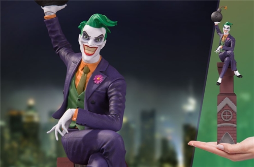Joining his friends Catwoman and The Penguin in this wicked multi-part statue series, The Joker sits atop a Gotham rooftop with a lit bomb in hand and the classic swagger that only The Joker himself possesses. Pair this piece with the other statues in the series or as a standalone statue.