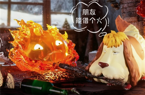 ⫸ Product Configuration: Inin Dog, Calcifer, stand, wine bottle, and other miscellaneous items.