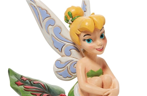 The Tinkerbell Sitting on Holly Figurine features: Figurine 5 in H Jim Shore Disney Traditions Collection - Peter Pan "Happy Holly-days" Beautifully hand-painted and crafted from high-quality stone resin with intricate styling and attention to detail Jim Shore's unmistakable style evokes a sense of nostalgia with traditional themes, quilt patterns and design motifs inspired by American and European Packaged in individual box with photo on front Proudly designed in the USA