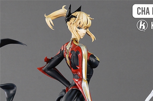 She is shown here with her full red and gold armor and you will notice the detail of her armor "flying" under the effect of the action. Cha Hae-In has a sword with a particular guard because it covers her whole hand.