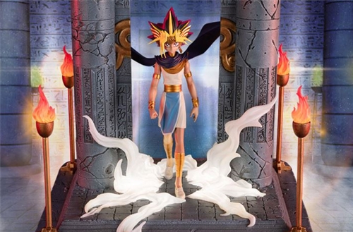 The statue's concept is inspired by the scene in Yu-Gi-Oh! when Atem passes through the door to the afterlife after being freed by Yugi Muto. The statue meticulously captures Atem's details, from his iconic tri-colored hair crowned by the Millennium Puzzle headdress to his ancient Egyptian garb.
