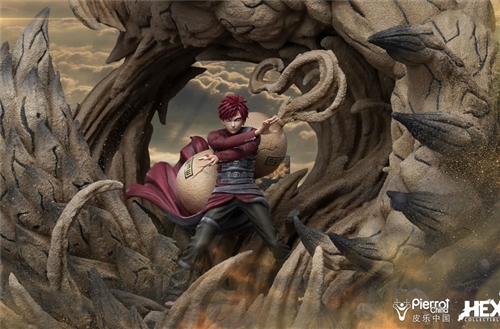 The quicksand rushed out from the platform and the gourd, rolled up the gravel and scattered at Gaara's feet. The dynamic fluid sand and gravel design complemented the roaring guard crane behind him, making people feel the tense battlefield freeze-frame moment.