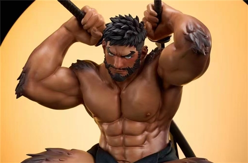 Werewolf body, human form head sculpture, wolf form head sculpture, double-edged, base, non luminous full moon, orc apron