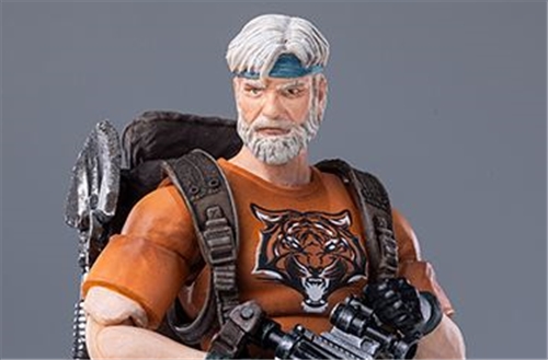 This new EXQUISITE MINI series Outback Tiger Power Edition action figure stands approximately 11cm tall. Compared to the original design, the overall shape emphasizes frontline operational attributes and a combat-ready feel. The appearance faithfully recreates Outback's mature look with short gray hair and a thick beard, a headband on his forehead, and a calm and collected facial expression, presenting the demeanor of an experienced tactical personnel. Wearing an orange short-sleeved T-shirt with a prominent tiger head logo on the chest, directly echoing the tiger's powerful identity, and paired with dark camouflage combat trousers and high-top combat boots, the overall look is sharp and composed, fitting the tactical style of field operations.