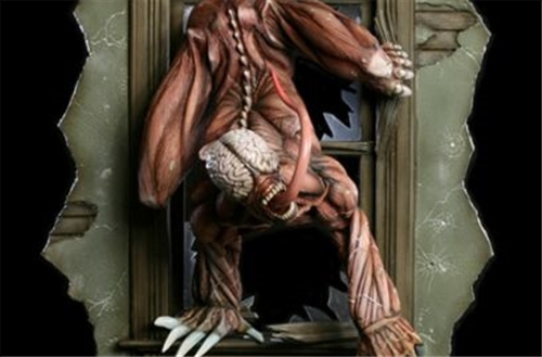 Bursting through a window of the mansion, this amazing sculpt captures the mutated creature in every detail in a full 360 degree diorama. No detail has been spared from the shattered glass and spent shotshells on the floor, to the claw marks in the outside wall.