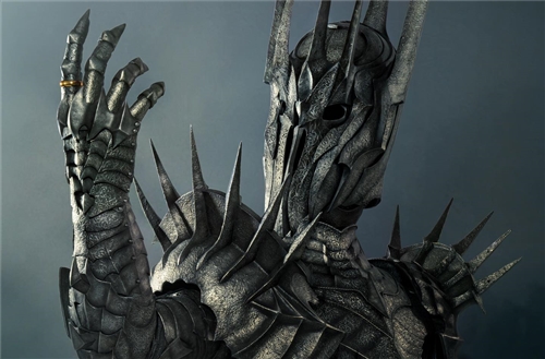 Added to these is the epic Life Size bust of Sauron . The bearer of the One Ring is depicted with the iconic armor, while he raises his right arm as a sign of victory and on his finger he wears the One Ring , which can be illuminated by LEDs . The sculpture has a height of 1.75 meters (practically an adult man) and will be made of Fiberglass , Polystone and real fabric aid for the cloak.