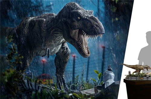 Sideshow and Iron Studios present the diorama statue T-Rex and Donald Gennaro 1:20 Art Scale! With the most iconic dinosaur, the symbol of the Jurassic Park franchise, the Tyrannosaurus, or simply T-Rex, in the most shocking moment of its first appearance on the movie that started the trilogy in 1993 when it eats the greedy lawyer, Donald Gennaro.