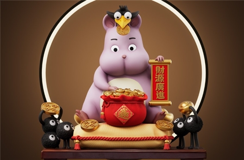 ⫸ Product configuration: Fortune-attracting baby, 5 different types of fortune-attracting coal balls, fortune-attracting pet bird, round light ring, wooden base, 3 ingots, 4 gold coins, and a lucky bag