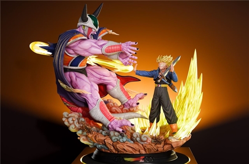 The scene is sculpted with precision, highlighting every muscle, expression, and unique feature, from Trunks’ determined stance to King Cold’s imposing presence. The dynamic positioning of both characters brings this epic battle to life, offering fans an authentic, unforgettable visual experience.