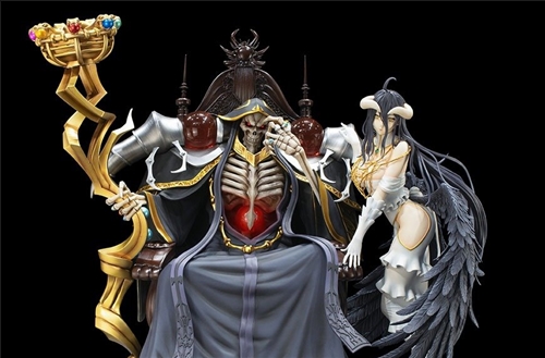 An impressive statue of approximately 62 cm in height and 20 kg in weight that, as you can see, has been sculpted without leaving even the smallest detail so that the most Overlord fans can soon add a new piece worthy of it to your collection. A most imposing statue in which we can see Ainz Ooal Gown sitting on the Nazarick Throne and Albedo standing next to him and in which, both of them have been sculpted and painted, simply paying the utmost attention to detail. From their respective outfits, Ainz Ooal Gown's staff, the throne he's sitting on, and down to each of Albedo's black wing feathers.