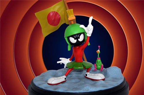 The Marvin the Martian Statue features: Limited edition of 500 Diorama base including flag and space chicken Alternate hand sculpt holding ray gun
