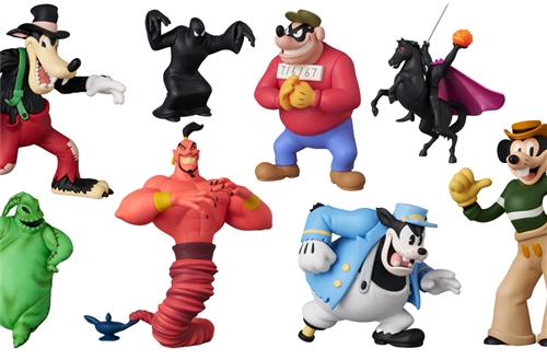 This incredible UDF toy line, featuring Disney villains, is a real treat for old-school Disney fans! Included are Jafar , Mortimer Mouse from the 1936 animated film "Mickey's Rival," the green-clad Uggie Buggy , the beefy Pete , Bouncer Beagle (numbers 716-167 ) from the criminal gang "The Beagle Boys ," Big Bad Wolf from the 1934 animated film "Big Bad Wolf , " the Headless Horseman , and The Phantom Blot from the 1939 comics .