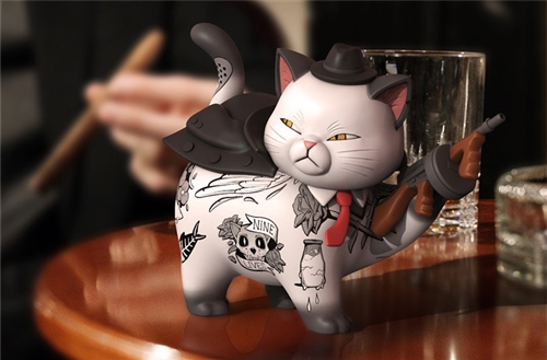 Purrface returns to the inside life after years of running the back alleys. Purrface is forced to adapt but his shrewdness has wrestled him control of the living room. Nothing sets foot inside without him knowing, no kibble is distributed without his say-so. If you cross this fearless feline, you best be prepared to face the consequence. As his ambitions grow, he plans to build on the empire he’s created and stop anycat who gets in his way. Sideshow and Mighty Jaxx are proud to present the Purrface Polystone Statue. SyndiCats is a line of original designs by Mighty Jaxx. Powered by Forreal. This statue stands approximately 6" tall. Say "meow-lo" to this little friend today!