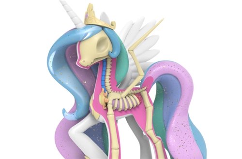 The My Little Pony collection continues with the XXRAY Plus treatment of the alicorn princess, Princess Celestia! XXRAY Plus: Princess Celestia is captured in magnificent detail, from her colorful, glittery long mane to her pure white skin, the XXRAY Plus Princess Celestia leaves no detail behind. Dissected in Jason Freeny's iconic dissection style, see Princess Celestia like never before, take special note of where her heart is. Something special sits in its place. Experience endless magic with the first-ever XXRAY Plus: Princess Celestia dissected art toy today!