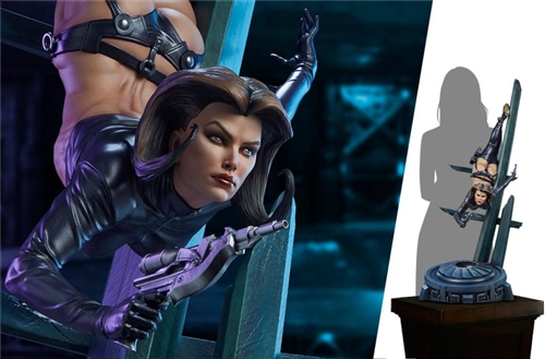 The gravity-defying Aeon Flux 1:3 Scale Statue measures 39.5” tall and 17” wide as the secret agent dives headfirst into her next mission, infiltrating the strongholds of dictatorial Bregna. The dystopian city’s scientific, overbearing aesthetic is evident in the stylized base while Aeon Flux descends with her pistol in hand. She must evade detection and overcome enemy combatants with her espionage abilities on her path to assassinate the tyrant Trevor Goodchild.
