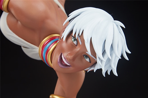 Measuring 24” high and 11.5” wide, this Street Fighter statue depicts a light-hearted and laughing Elena as she flips gleefully into her next fight. Balancing on one hand, the capoeira practitioner kicks her bare feet high toward the scorching sunlight. She expertly poses atop a single dock post while it sinks into a cerulean sea.