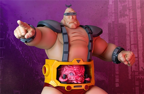 The Krang Statue measures 22” tall and 20” wide, already mad with power as he brandishes his new android body. Krang pilots this powerful suit toward his dreams of ruling Earth, its massive muscles and armor protecting Krang where his own brain-like form cannot. In the android’s hollowed out stomach is Krang himself, pink and gelatinous, a toothy grin and shifty eyes no doubt showcasing an evil plan for world conquest. Standing on a base of cracked flooring and rubble, this super-villain is more than ready to take over!