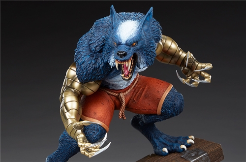 The Sabrewulf – Player 2 1:4 Scale Statue is fully sculpted based on the character’s appearance in the hit fighting game series. Sabrewulf has detailed fur textures in a fully black color scheme. He is covered by gray trunks with a rope belt, and his snarling portrait is finished with white fangs and piercing blue eyes.