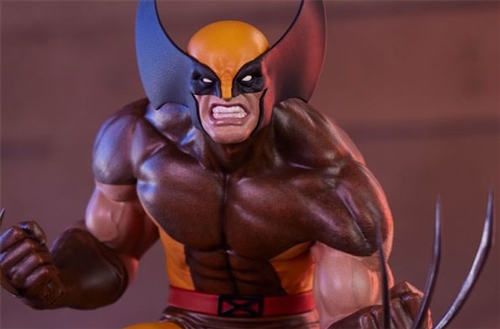 Canada’s toughest mutant is claws up and ready to tear down any enemy in his classic brown and yellow suit. Unbreakable Adamantium claws project from his clenched fists as Wolverine crouches in a wide, firm stance. From the vivid costume color detailing to the metallic intricacy of his indestructible talons, every aspect is a testament to Wolverine’s enduring legacy.